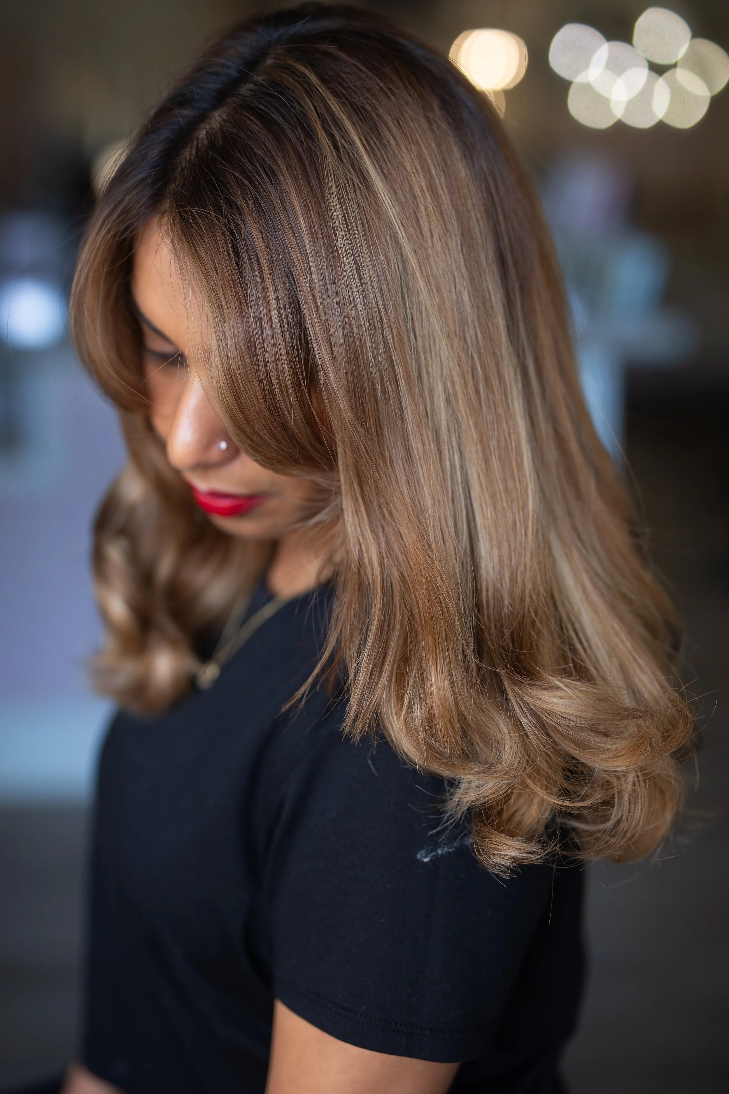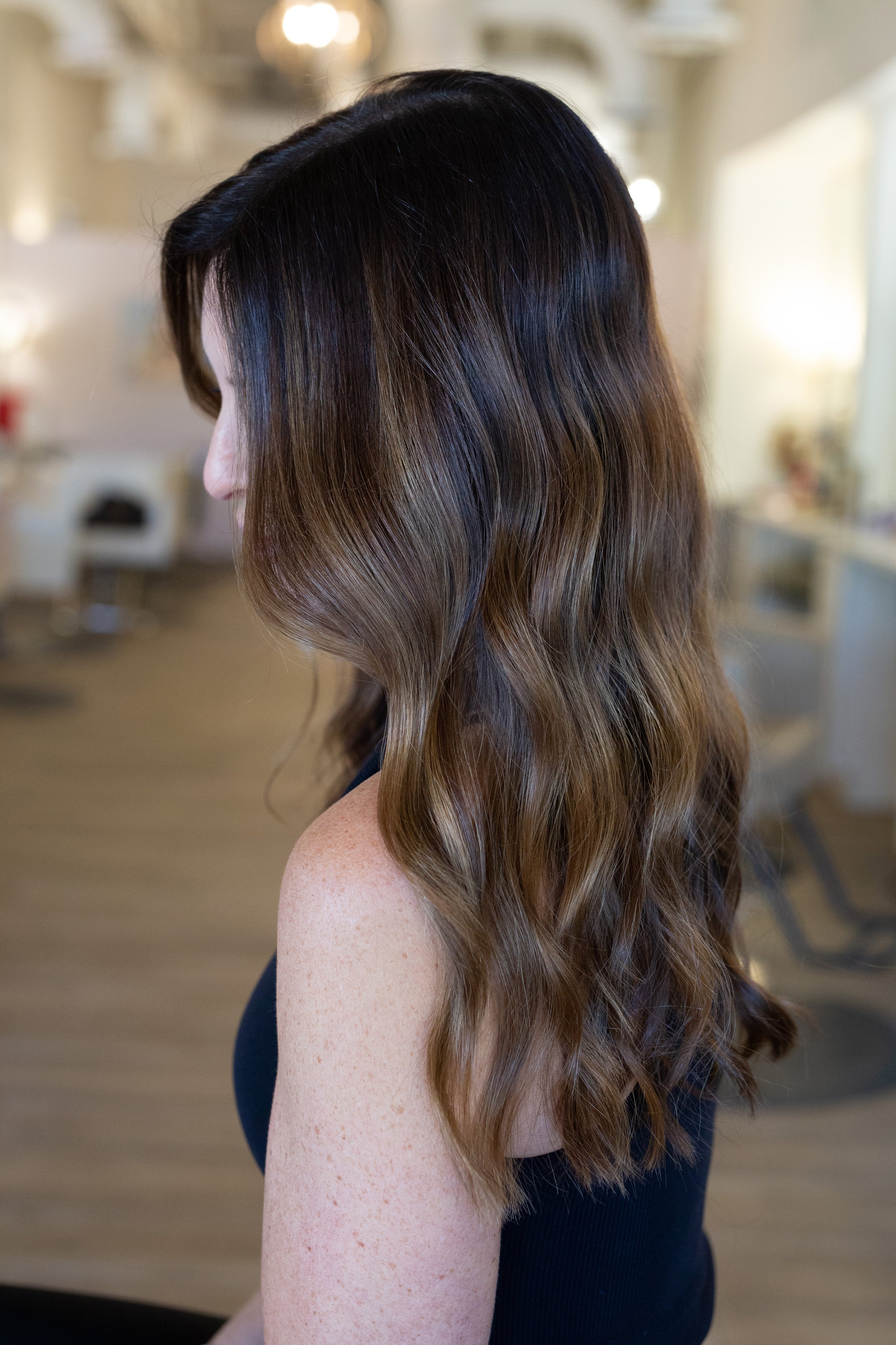 This service is designed to add soft, low-contrast dimension while keeping your overall depth intact. Think subtle ribbons of brightness, enhanced richness, and a natural, sun-touched glow — without shifting into bronde territory.